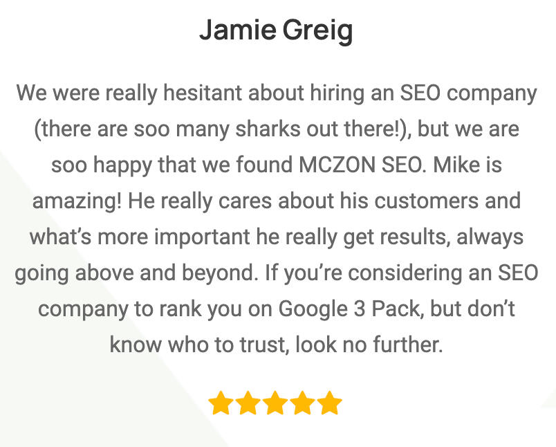 We Leverage Over A Decade Of Extensive Experience To Be Able To Develop A Customized Strategy Tailored To Each Specific Need. This Strategy Is Designed To Efficiently Elevate Your Position In Google's 3-Pack Search Results In The Shortest Feasible Timeframe. Our Distinctive Approach Remains Unaffected By The Level Of Exertion Your Competitors Invest In Their Ranking Endeavors. With Unwavering Confidence, We Consistently Surpass Their Efforts, Ensuring A Consistent Record Of Triumph.